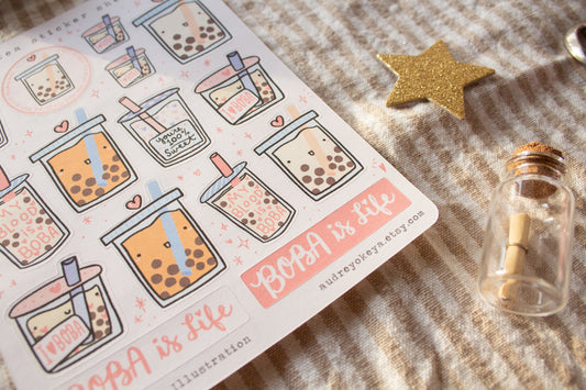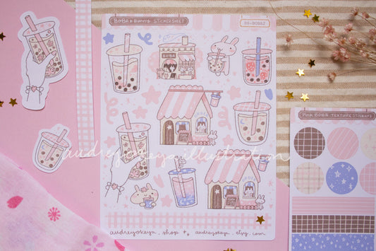 Boba Shop Pink Sticker Sheets | Pink Circles Washi & Ribbons Sticker Sheet - 2 Diff Kinds!