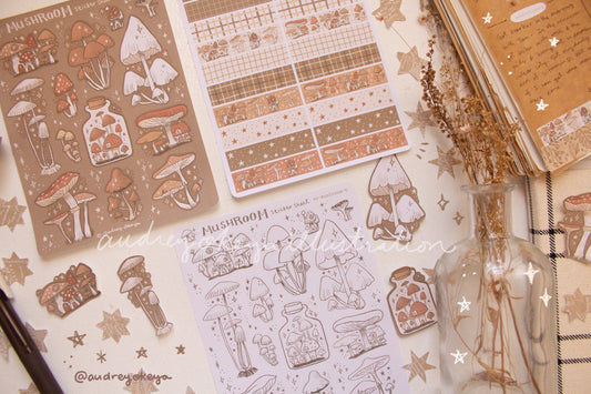 Mushroom Cottagecore Bullet Journaling Stickers & Washi Strips