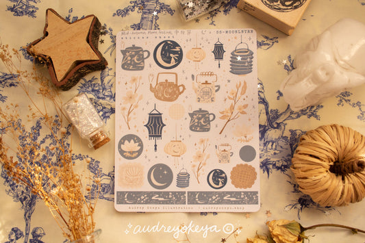 Mid Autumn Moon Lantern Festival Sticker Sheets & Corner Stickers