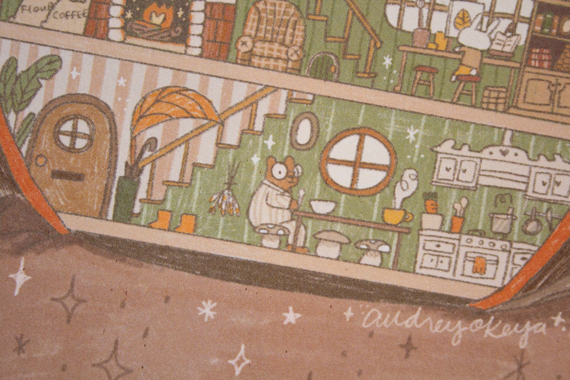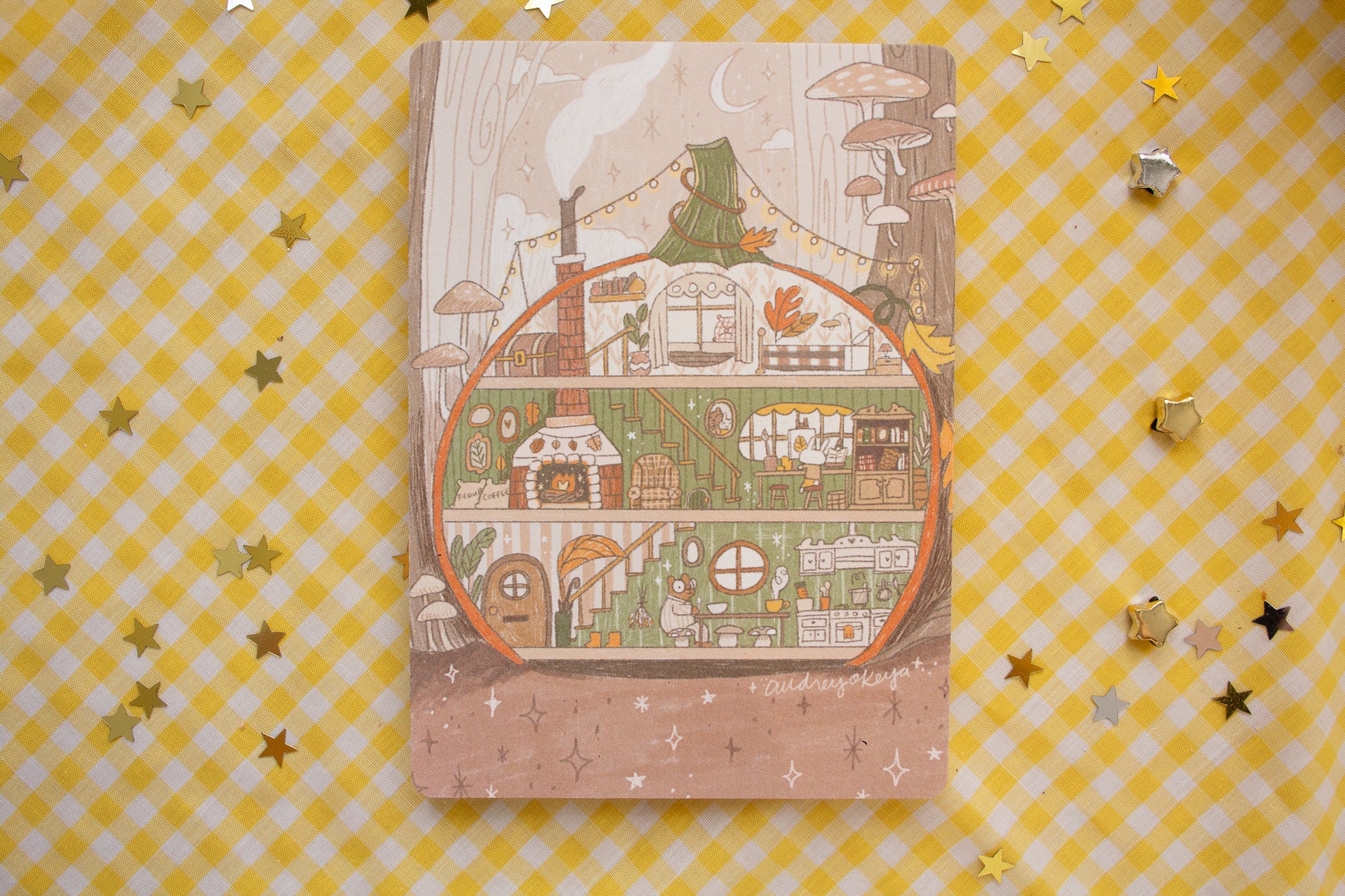 this cozy pumpkin house scene is a lovely autumn vibe for your walls!